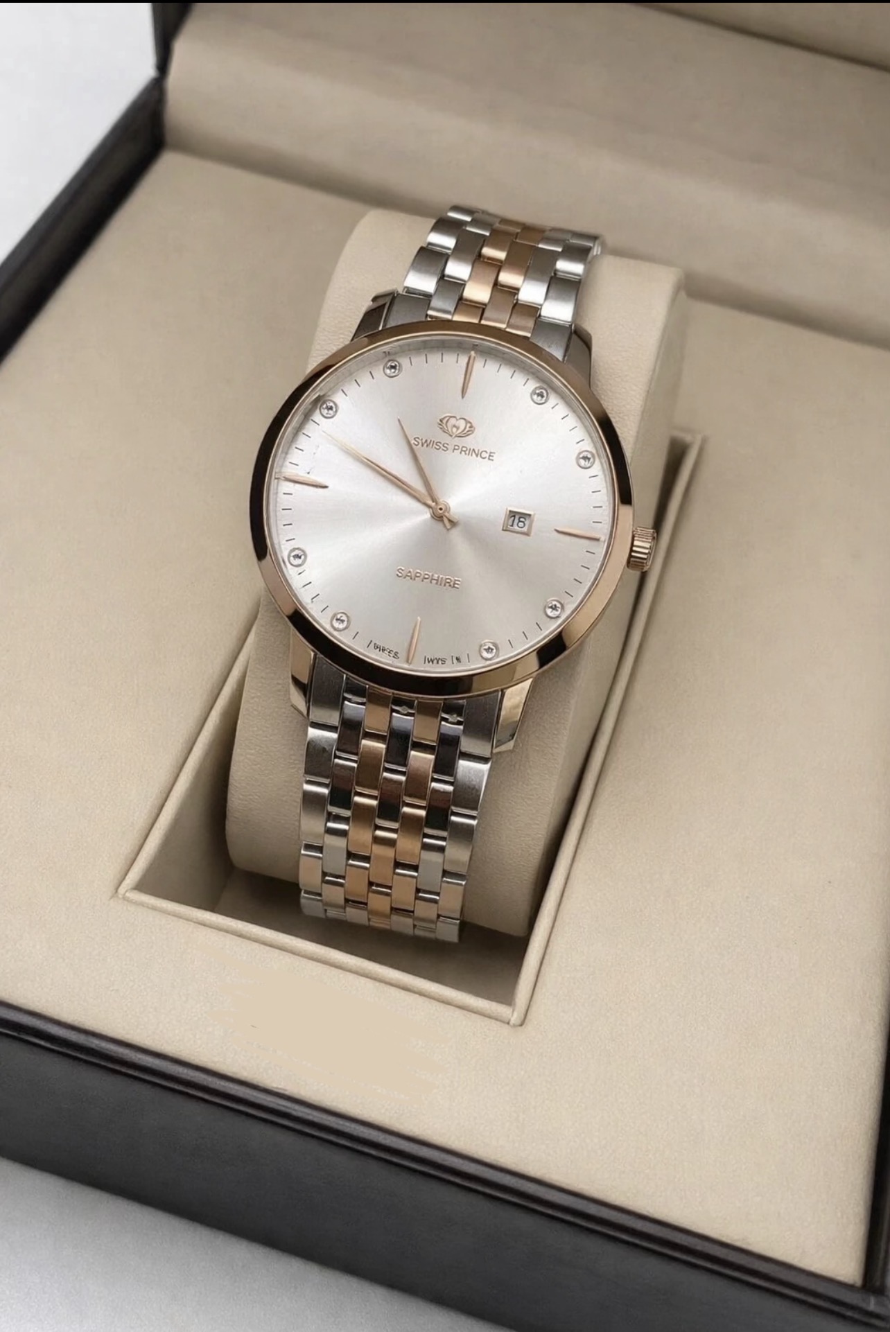 ساعت مچی مردانه سویس پرنس سفید طلایی یک انتخاب حرفهای و باکیفیت برای کسانی است که دنبال ساعت شیک، بادوام و با عملکرد قابل اعتماد هستند. موتور سوئیسی، بدنه فول استیل و صفحه ضد خش، همه دست به دست هم دادهاند تا این مدل را به گزینهای ارزشمند در بازار ساعتهای کلاسیک تبدیل کنند. این ساعت مناسب افرادی است که به جزئیات اهمیت میدهند و میخواهند ساعتی را همزمان در موقعیتهای رسمی و روزمره استفاده کنند.
