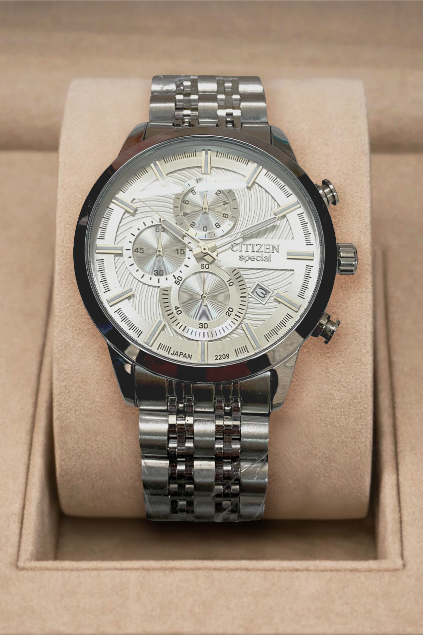 ساعت سیتیزن اسپشیال صفحه سفید بند نقرهای، انتخابی مناسب برای کسانی است که به دنبال ساعتی شیک، بادوام و با موتور مطمئن ژاپنی هستند. این مدل با طراحی کلاسیک و کیفیت ساخت مناسب، ارزش خرید بالایی در میان ساعتهای رسمی همرده خود دارد و میتواند سالها همراه استایل شما باشد